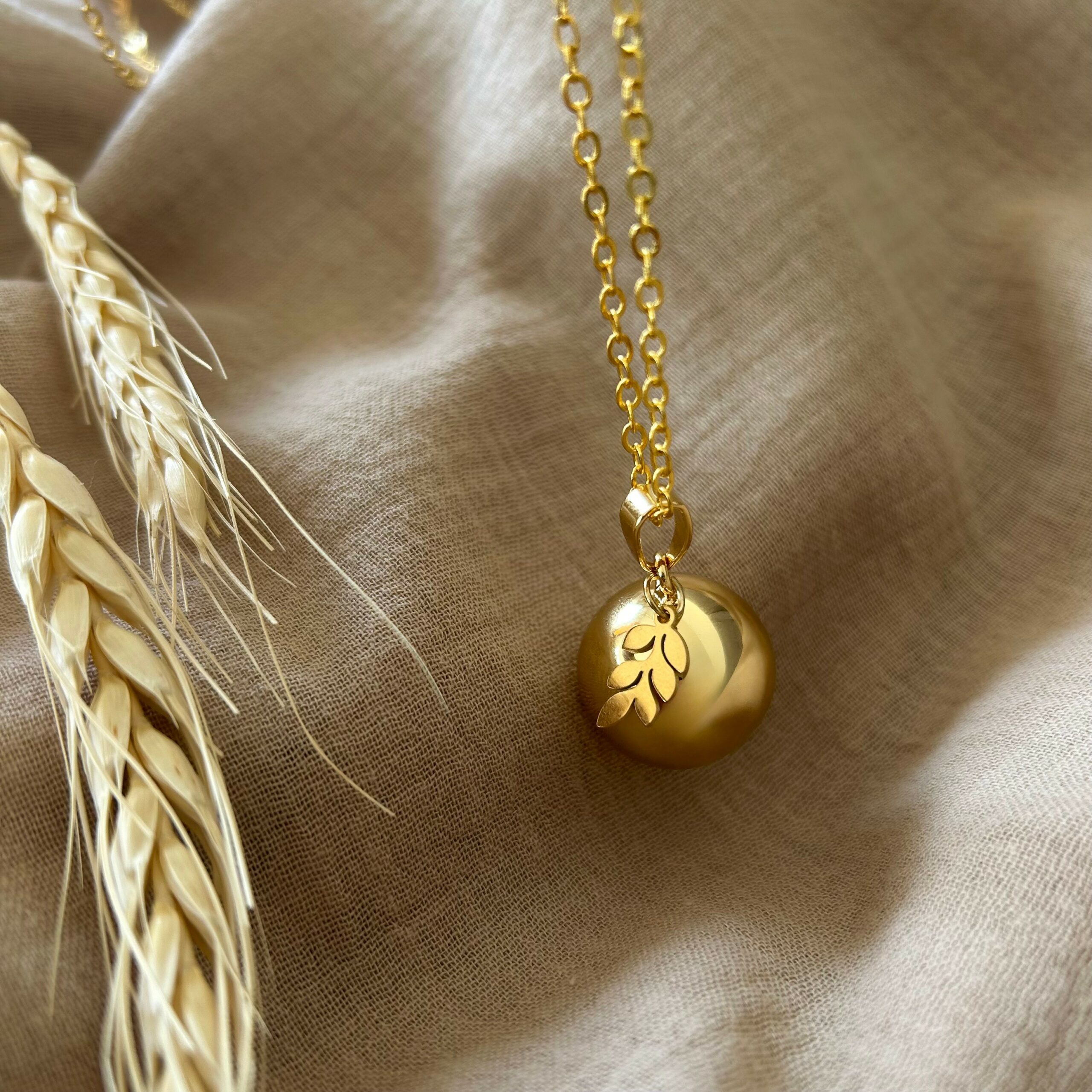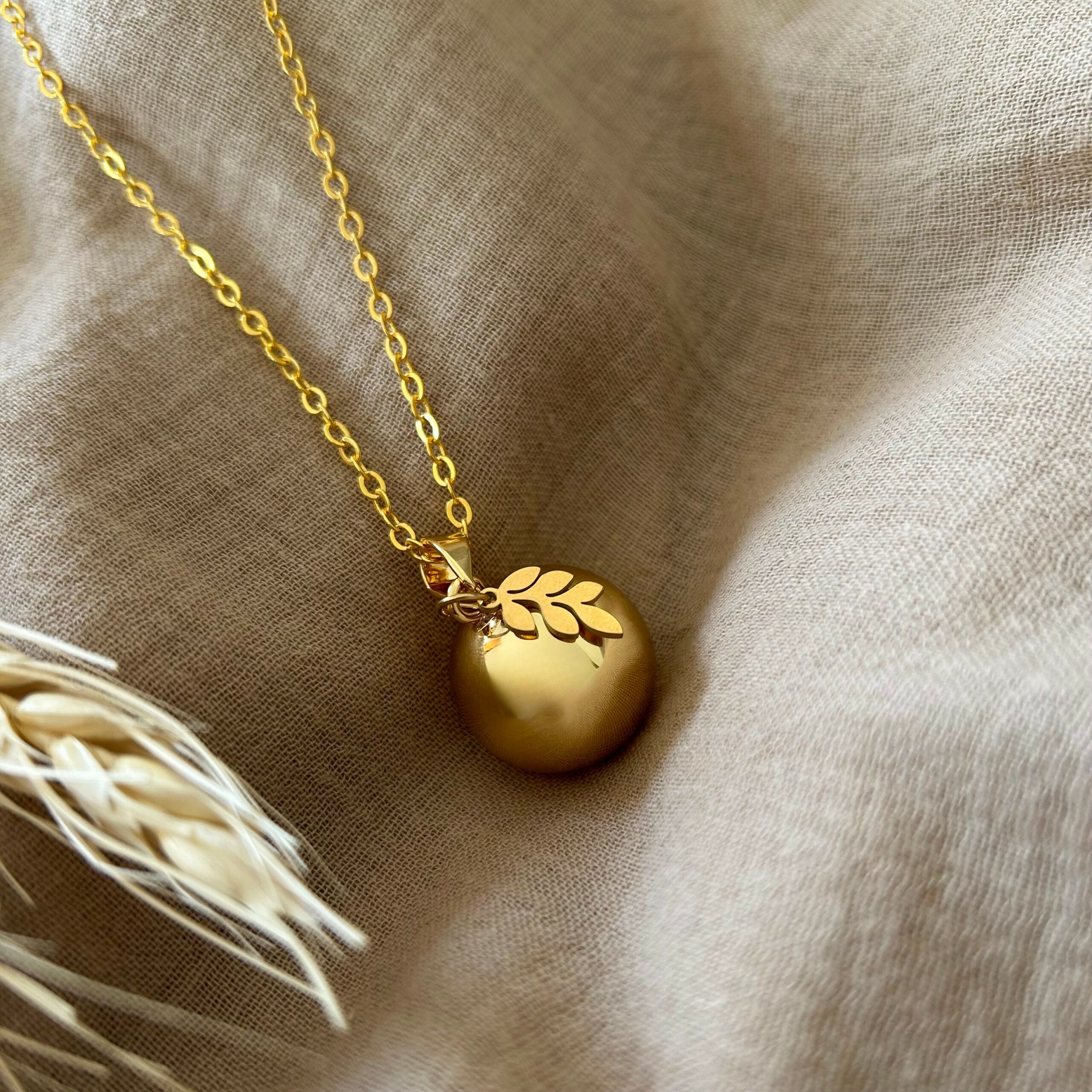🍃 Bola grossesse doré avec breloque feuille, nature et sérénité